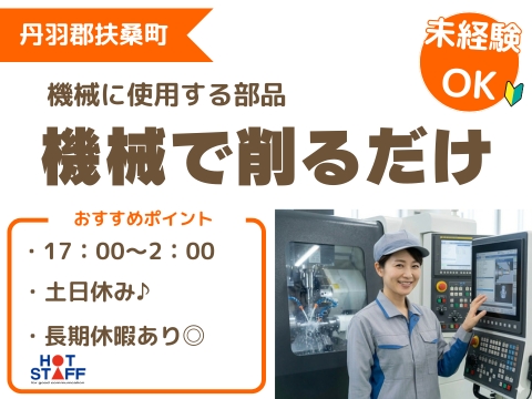 《1キロ程度の金属部品を機械で削るだけ》空調完備/カンタンもくもく作業/土日休み/夜勤専属/残業あり