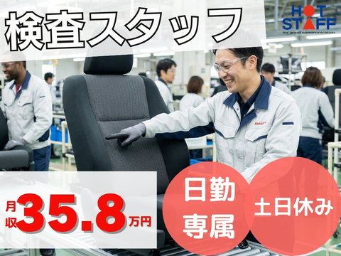 《流れてくる車のシートをチェックするだけ》即日見学・入社OK/月収35万円可能/残業あり/土日休み
