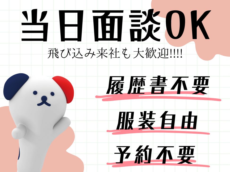 履歴書不要!私服OK!持ち物なし!