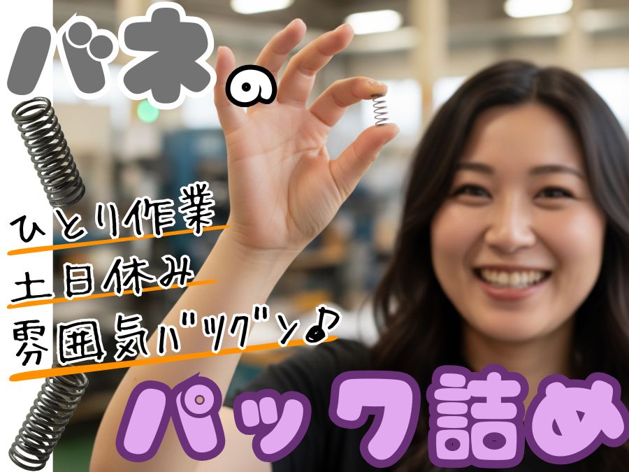《重量物なし♪ひとりもくもくバネをパックに詰めるだけ♪》土日完全休み/アットホームな職場