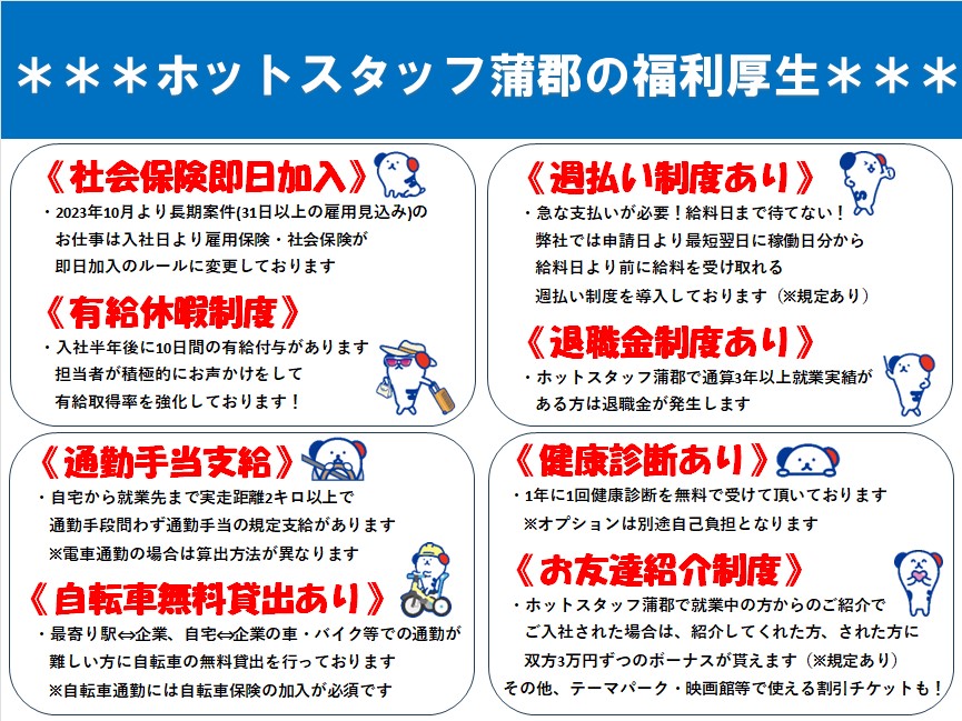 〈 ホットスタッフ蒲郡は福利厚生も充実! 〉