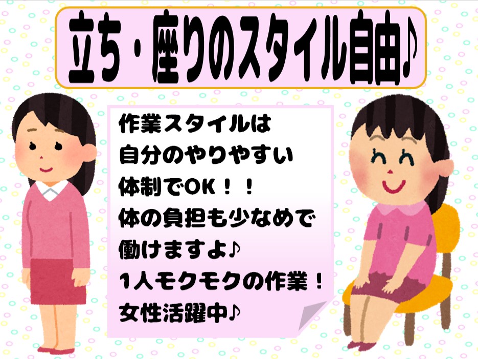 《作業スタイル:立ち・座り自由♪目視で部品の検査》8時~17時/土日休み/駅チカ/ネイルOK!