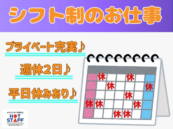 土日祝含むシフト制となります