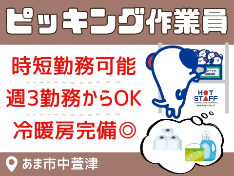 2月末までの短期/時短・週3勤務~OK/冷暖房完備/トイレットペーパーなど日用品を棚から集めるだけ