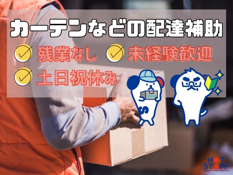 8時~17時/運転免許いりません!/土日祝日休み/助手席に乗って移動*配送の補助作業をお願いします