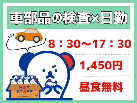 8:30~17:30/日勤専属/残業ありで稼げる◎/出荷前の車部品にキズなどがないかをチェック