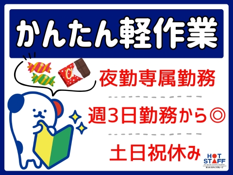 20:20~05:40/夜勤専属勤務♪/土日祝日休み/週3日勤務からOK!/お菓子の計量や梱包など