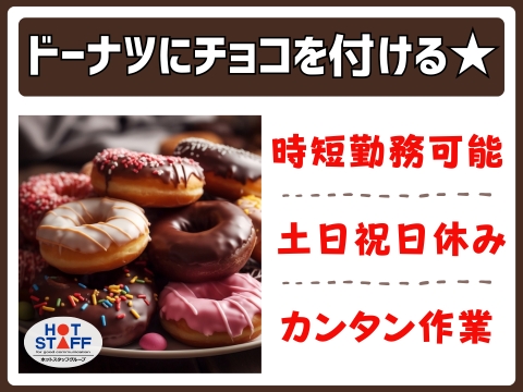 9時~15時/フルタイムもOK/土日祝日休み/1月初旬までの短期/ドーナツにチョコを付けたり梱包など