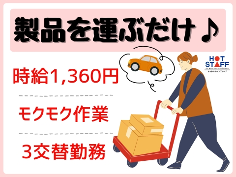 3交替勤務/残業ありで稼げるオシゴト♪/空調完備で快適/モクモク作業/製品を指定の場所へ運ぶだけ!