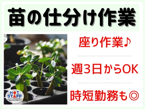 7時~17時/週3日勤務から◎/座り作業/室内で苗を小分けにしたりいらない部分をハサミで切ったり!