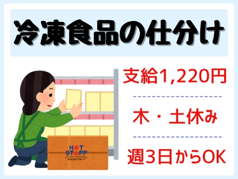 7:30~16:30/木・土休み/週3勤務~OK/ネイルOK/冷凍食品を光った場所へ入れていくだけ♪