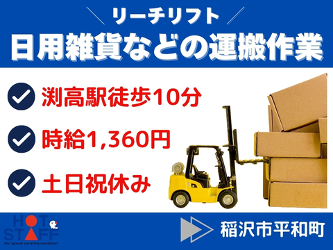8時~17時/完全土日祝日休み×残業少なめ/リーチリフトで日用品の出荷作業やピッキングなど
