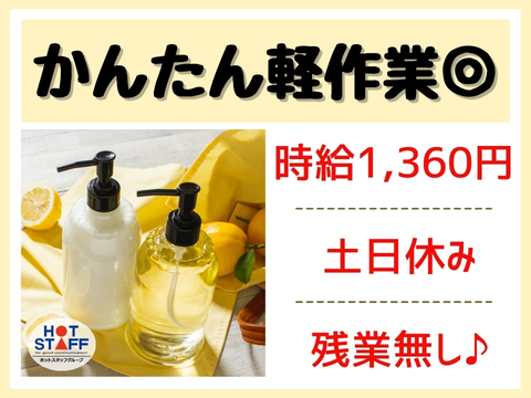 8:55~17:20/土日祝日休み/コスメ製造のかんたんお手伝い/ボトルをセットしたり、梱包したり!