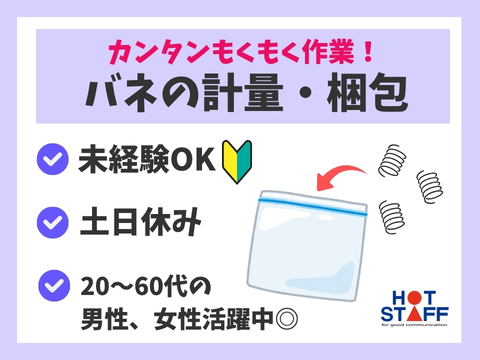 カンタン単純作業◎/8:00~16:45/土日休み☆/バネの重さを量って、袋詰めするだけ♪