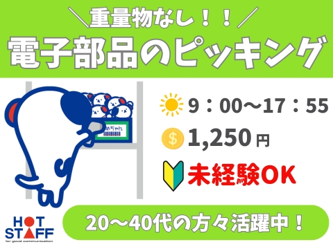 空調完備の倉庫内☆/日勤・9時スタート/キレイな設備環境/未経験OK◎/電子部品を棚から集めるだけ♪