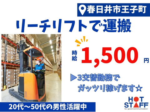 ガッツリ稼げます☆/3交替勤務/3日働いたら1日お休み♪/リーチリフトで運搬・出荷準備♪