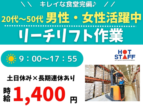リフト作業は1日8割ほど!/日勤・始業時間が選べます◎/リーチリフトで入出庫・ピッキングなど♪