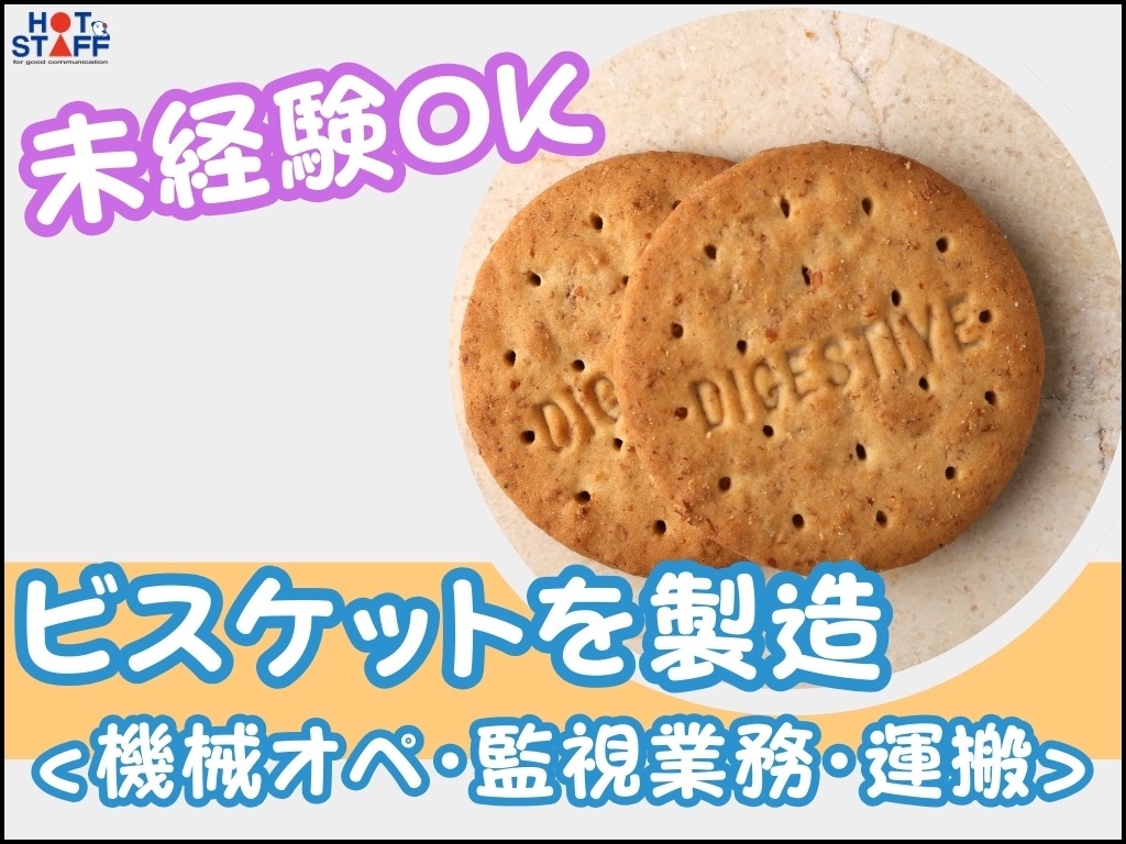 未経験OK・土日休み・長期連休あり!ビスケットを製造!<機械オペ・監視業務・運搬>