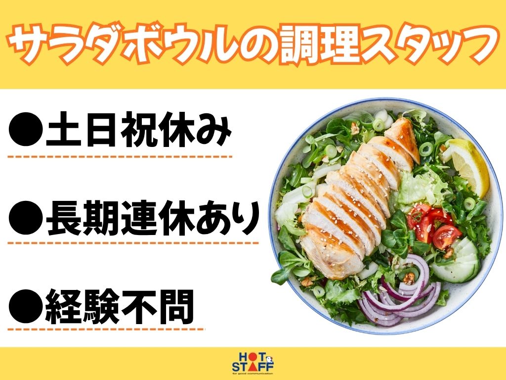 《社員食堂でサラダボウルの調理》土日祝休み/長期連休あり/未経験OK/1日5時間のショートタイム