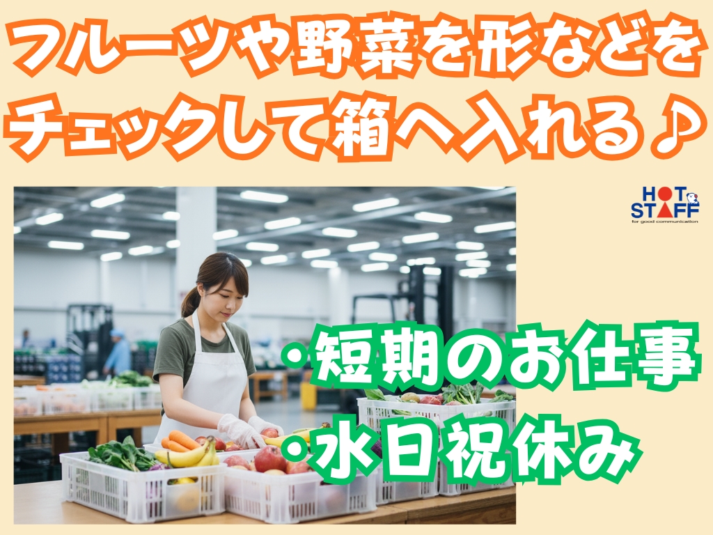 《出荷するフルーツや野菜を検査してケースへ入れる♪》未経験OK/短期のお仕事/水日祝休み