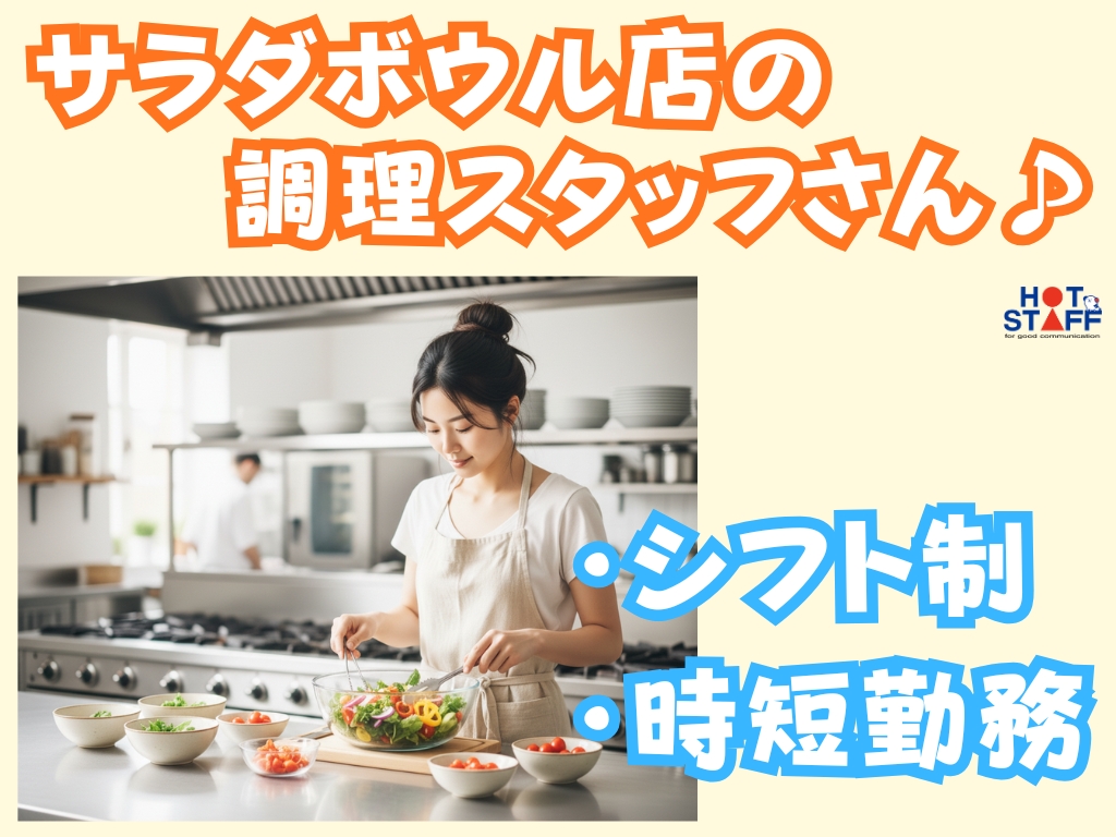 《サラダボウルを提供するお店の調理スタッフさん♪》未経験OK/シフト制/ショートタイム/残業なし