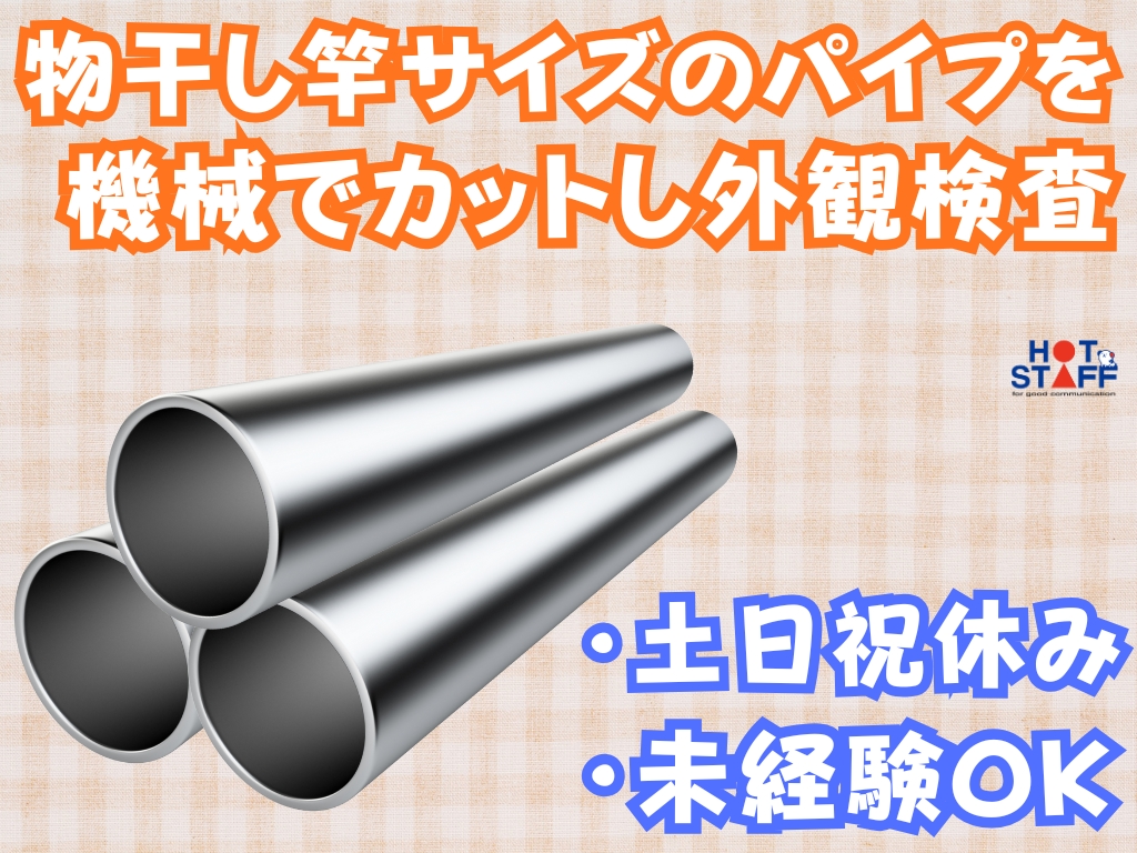 《物干し竿ほどのパイプを機械で自動カットし外観検査♪》未経験OK/土日祝休み/残業なし/重量物なし
