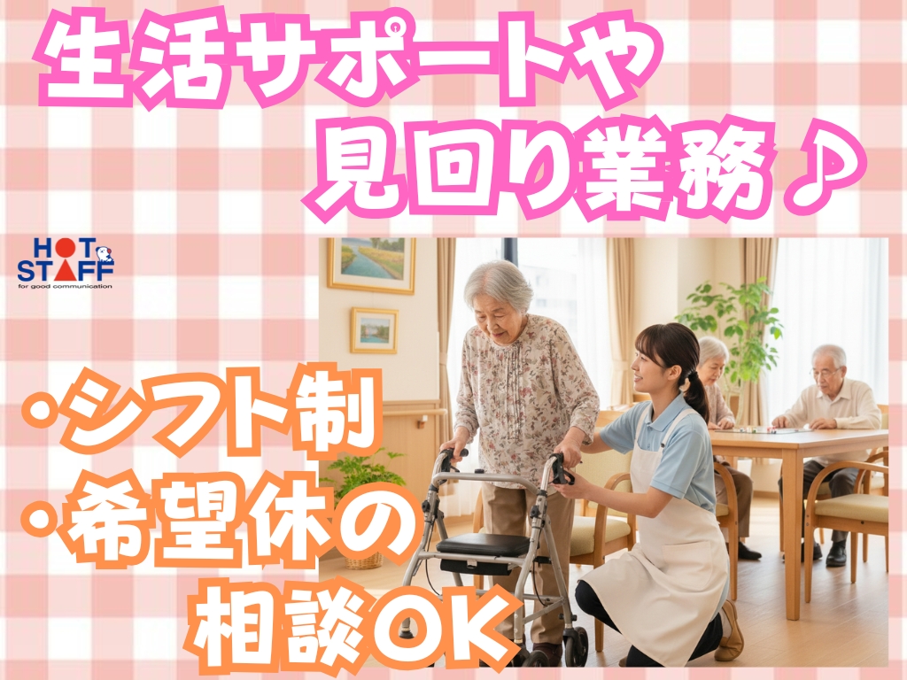 《住宅型老人ホームで生活サポートや見回り業務♪》資格を活かす/残業なし/希望休の相談OK/シフト制