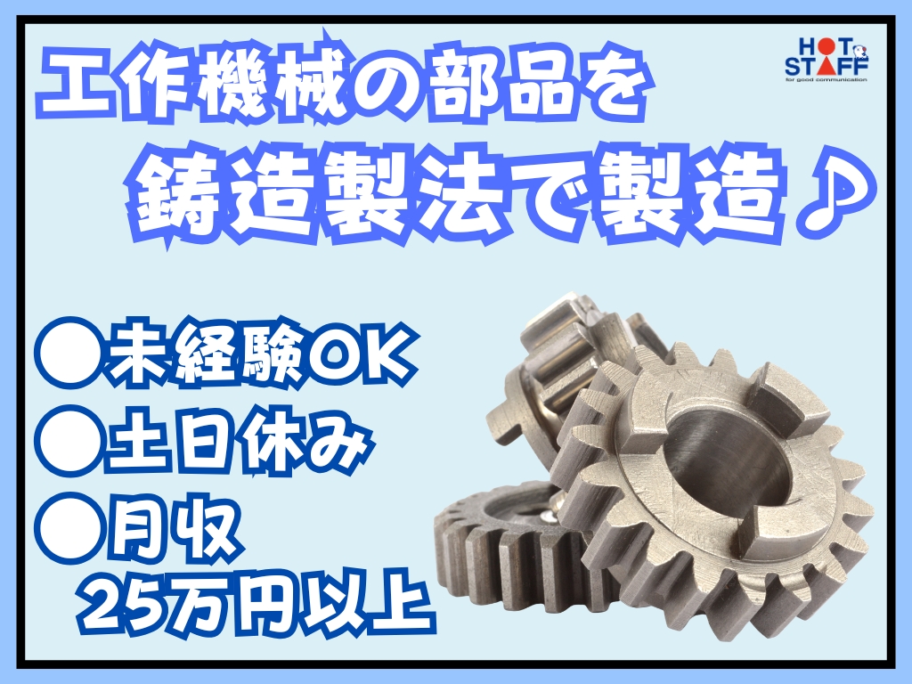 《工作機械の部品を鋳造製法で製造、型に砂を投入など♪》未経験◎/土日休み/残業なし/月収25万円以上