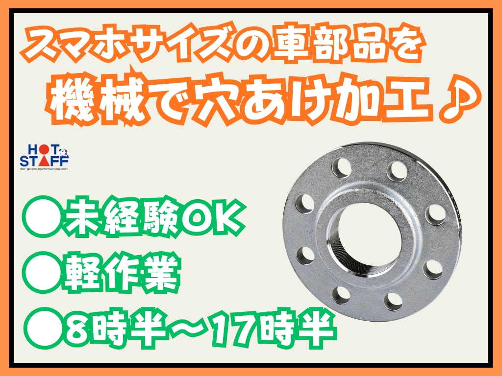 《スマホサイズの車部品を機械セットして穴あけ加工》未経験◎/軽作業/8時半~17時半/モクモク作業
