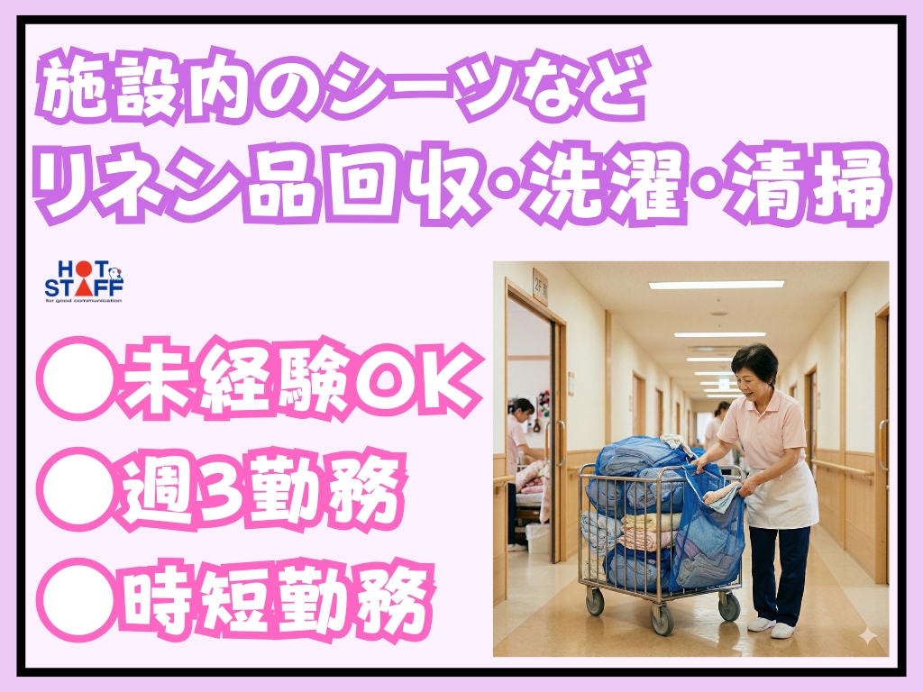 《施設内のシーツなどのリネン品回収・洗濯・清掃♪》60歳以上の方の募集◎/未経験OK/週3勤務