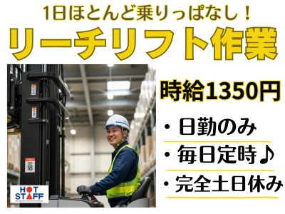連続2交替★月収33万円以上可【リーチリフト・1日ほとんど乗りっぱなしで入出荷作業】
