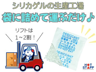 日勤×残業なし・高時給《袋詰め&リフト作業》お菓子の袋に入っているシリカゲルの工場