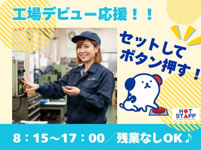 【単純作業】セットしてボタンを押すだけ♪8:15~17:00・残業なしOK|オシャレ自由な職場で工場デビュー★