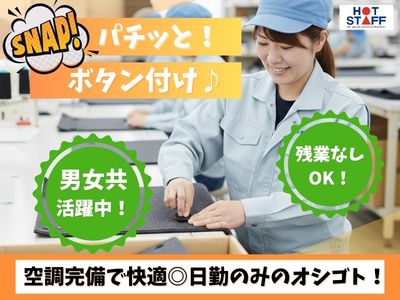 日勤8:00~17:00・残業なしOK|未経験でもデキル♪ボタンをパチッとつける手作業♪空調完備で快適◎