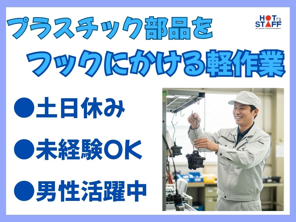 《流れてくるフックにプラスチック部品をかける♪》土日休み/無料Pあり/空調完備/カンタン作業