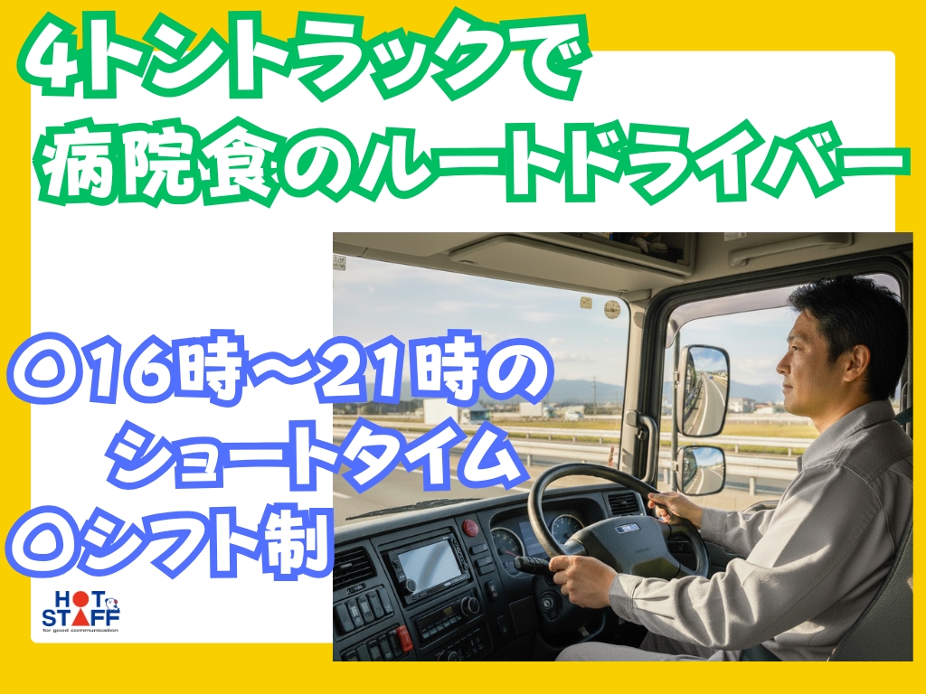 《4トントラックで病院に食事のルート配送♪》資格を活かす/16時~21時/シフト制/無料P完備