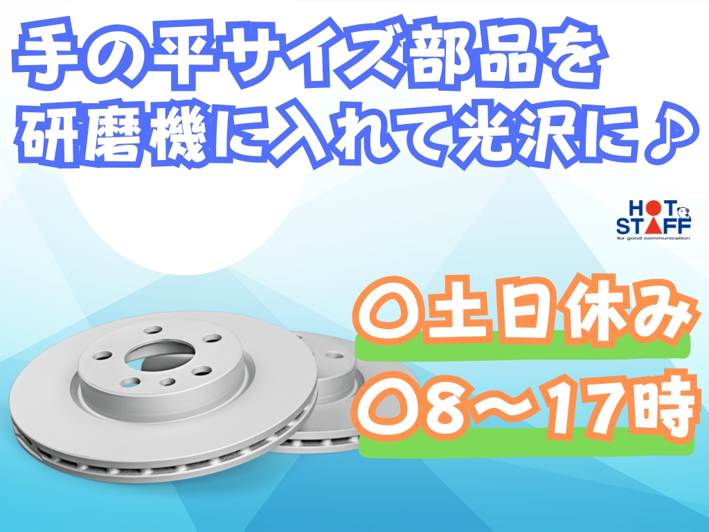 《研磨機に手の平サイズ部品を投入してなめらな部品に♪》未経験OK/土日休み/8時~17時/無料P完備
