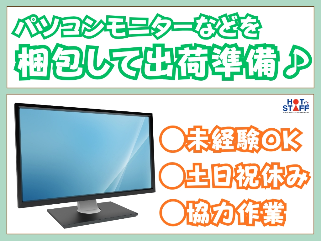 《倉庫内のATMやパソコンモニターなどを梱包して出荷♪》未経験◎/土日祝休み/協力作業/空調完備