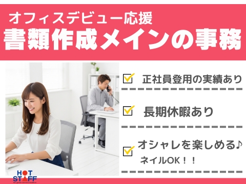 書類作成メインの事務スタッフ/オフィスデビュー応援/正社員登用実績あり/ネイルOK
