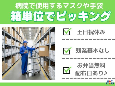 土日祝休み/7.5H勤務/残業基本なし/マスク・手袋など医療製品を棚から集めてピッキング