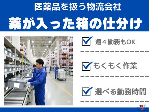 週4から紹介OK/実働5~8Hで選択OK/薬の入ったケースをピカピカ光った場所へ仕分けるだけ