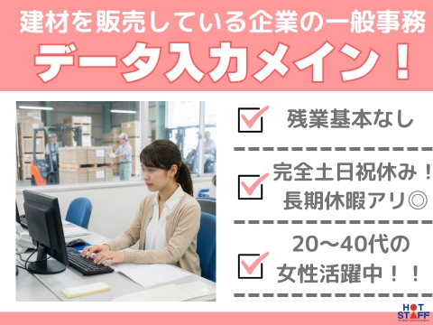完全土日祝休み!/残業キホンなし/ネイルOK/車休憩OK◎/建築資材を扱う会社で入力メインの一般事務