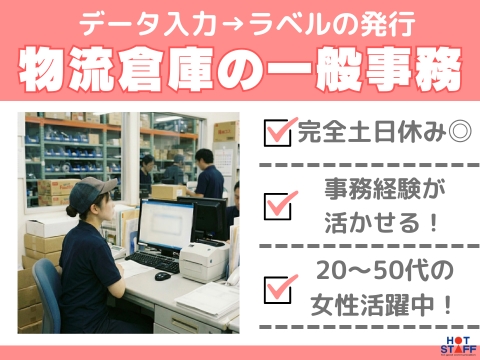 完全土日休み♪/長期連休アリ/日勤専属◎/事務経験が活かせる!/物流倉庫でデータ入力メインの一般事務