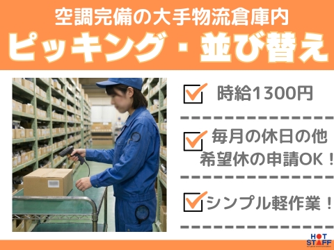 土日祝休み/希望休の申請OK◎/シンプル軽作業♪/100グラムほどの製品を棚から集めるピッキング