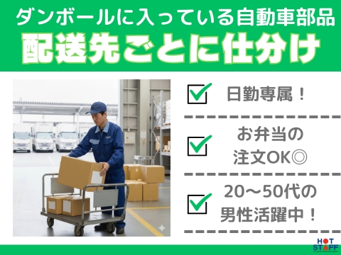 08:00~と08:30~出勤時間が選べる◎/基本残業ナシ/未経験OK/自動車部品が入った箱の仕分け