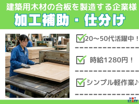 08:00~17:00/重量物なし◎/かんたん軽作業/合板を機械にセットしたり加工済を仕分けるだけ