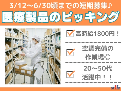 【6/30頃までの短期募集!】高時給1800円!/医療製品のピッキングと座って小分けにするオシゴト