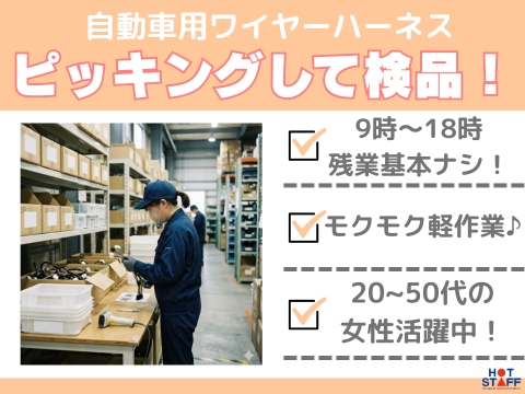 『9:00~18:00』/完全土日休み/かる~いハーネス部品のピッキング・検品/最大5kgほど!
