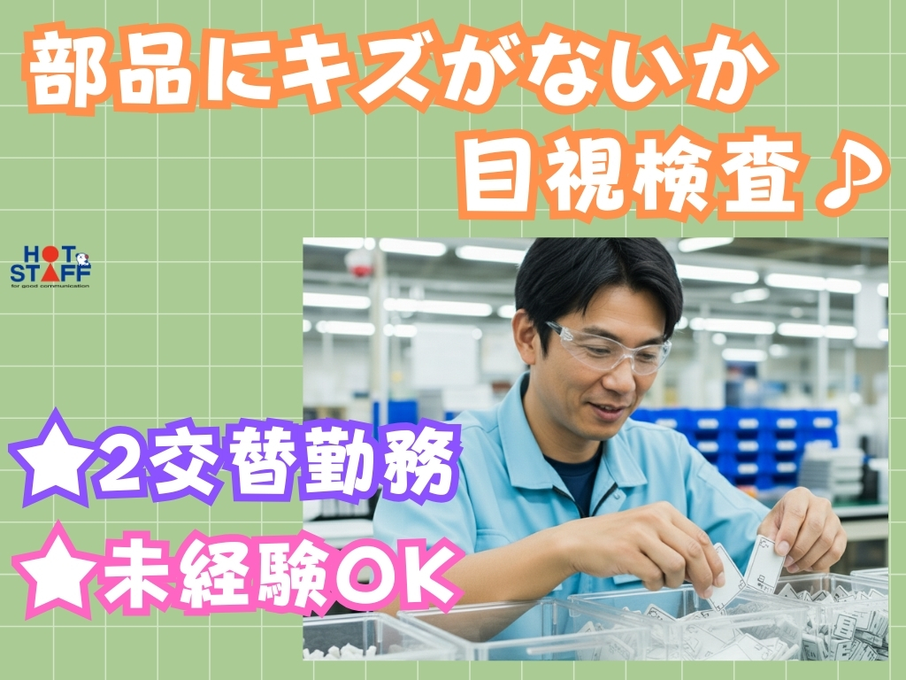 《トランプサイズの金属部品の目視検査♪》2交替勤務/未経験OK/年間休日120日以上
