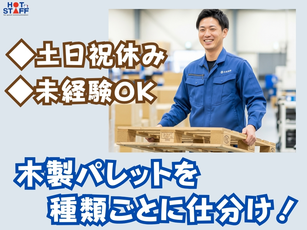 《出荷用の木材パレットの仕分け作業♪》土日祝休み/長期連休あり/未経験OK/残業なし